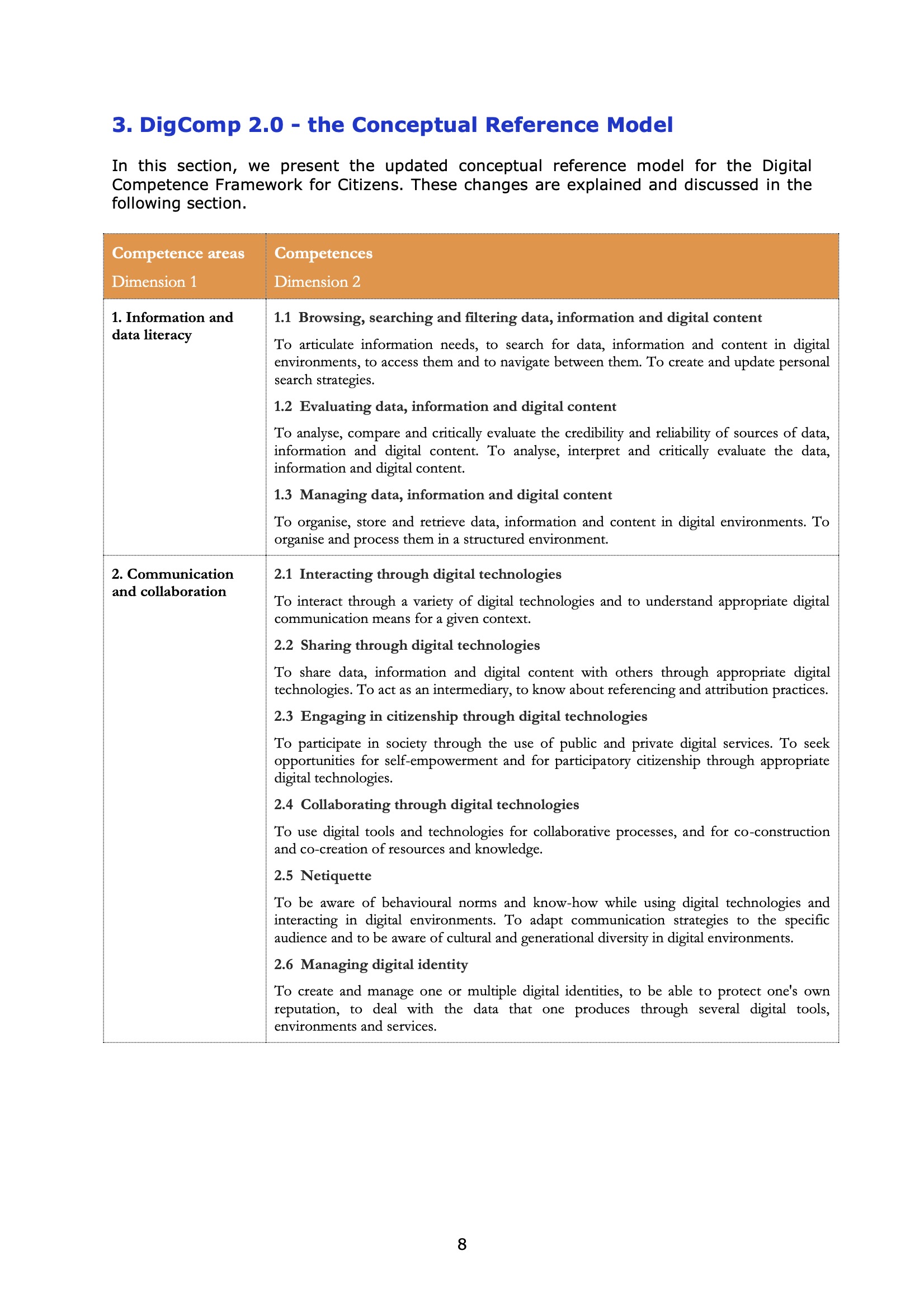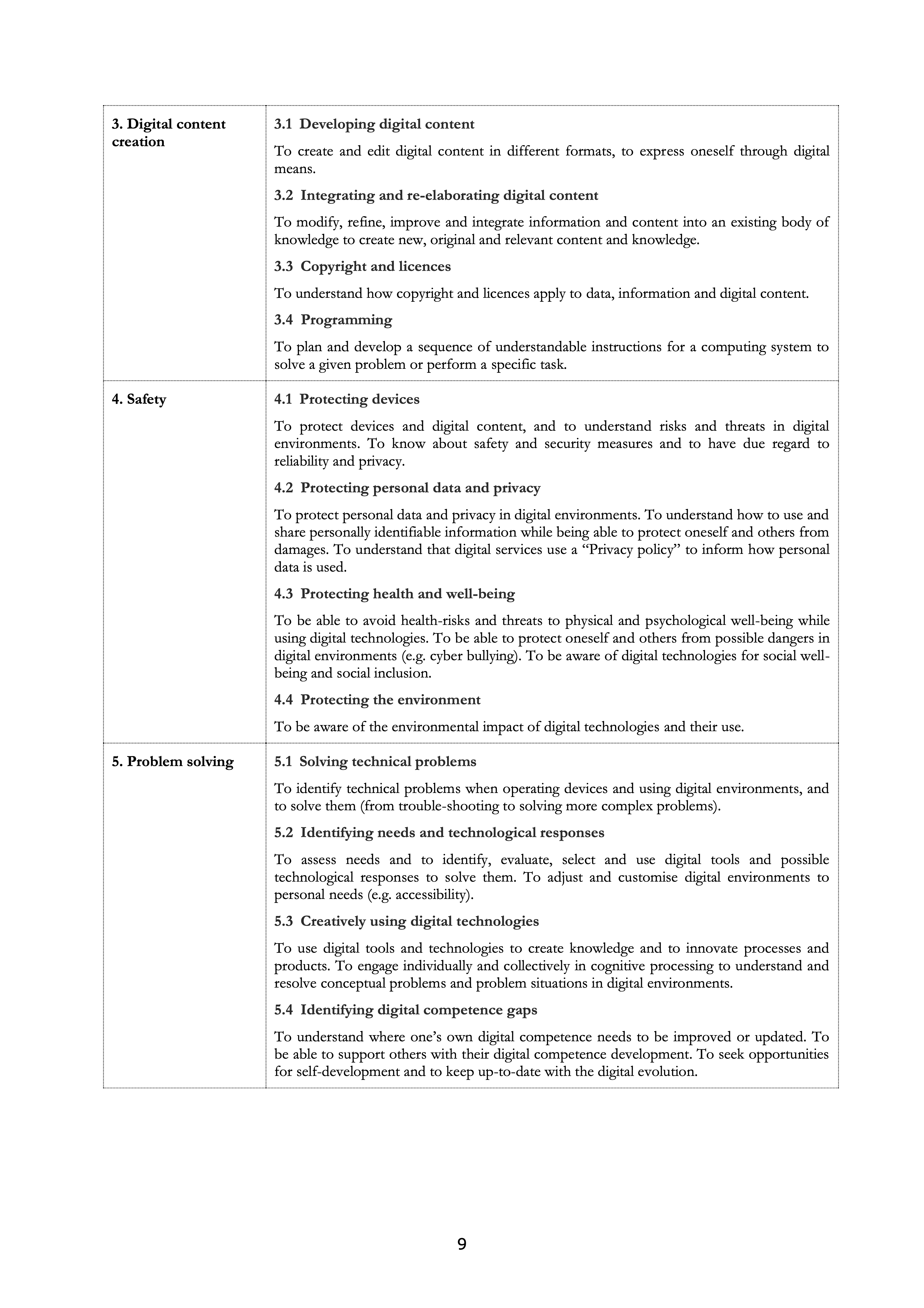 You can find the following DigComp 2.0 competences available as Skills tags (see the Help article how to add Skills tags to Activities).