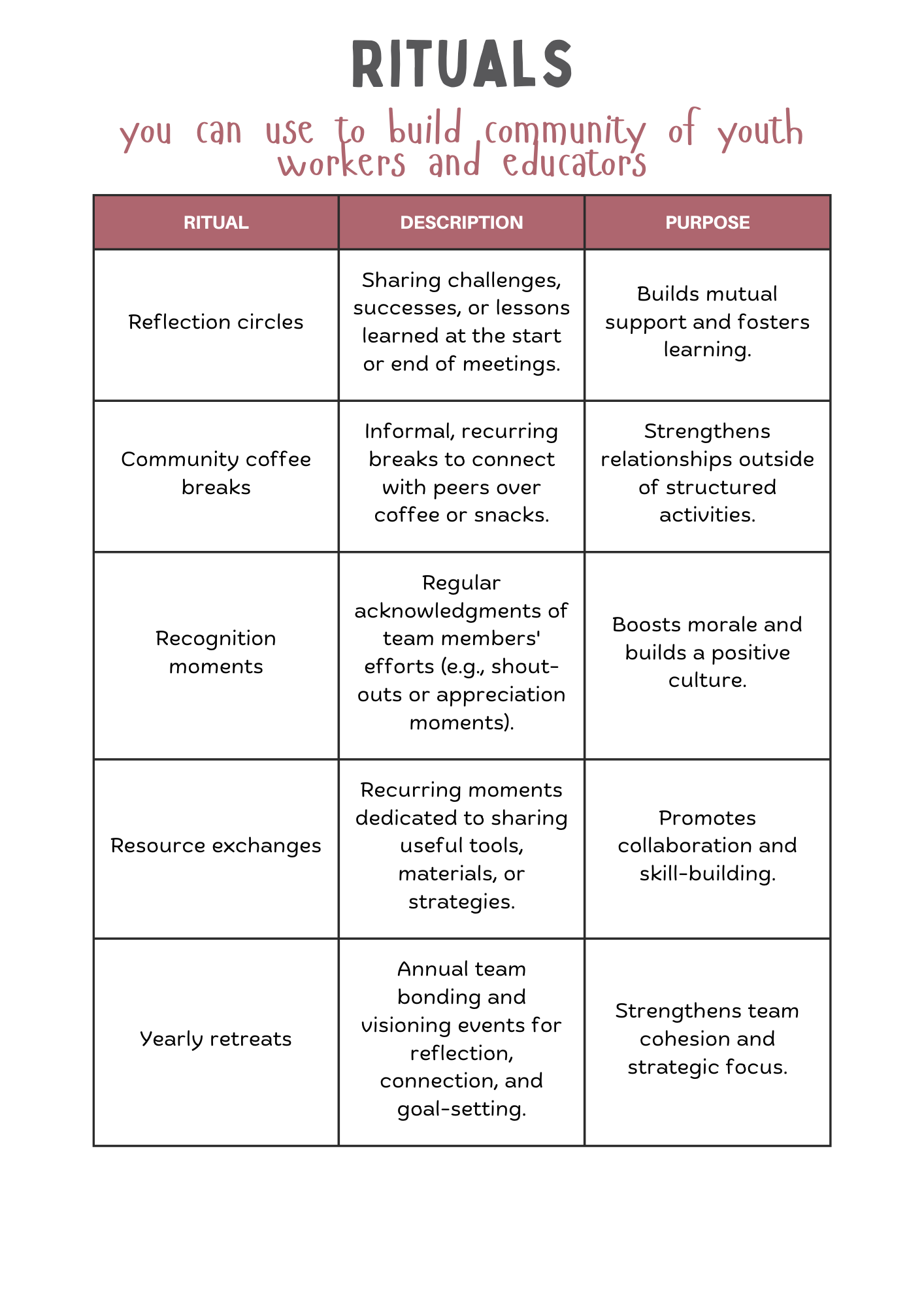 Support youth workers, teachers, and team leads. Empowering them builds trust and helps the whole community thrive.